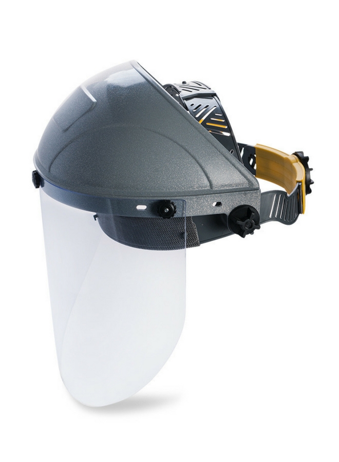 Ударопрочный и термостойкий щиток НБТ2/С для металлургов, машиностроителей, сварщиков. Защита от механического воздействия, летящих твердых частиц, абразива, искр и брызг неразъедающих жидкостей и расплавленного металла, высокой температуры, УФ-излучения в широком диапазоне температур.